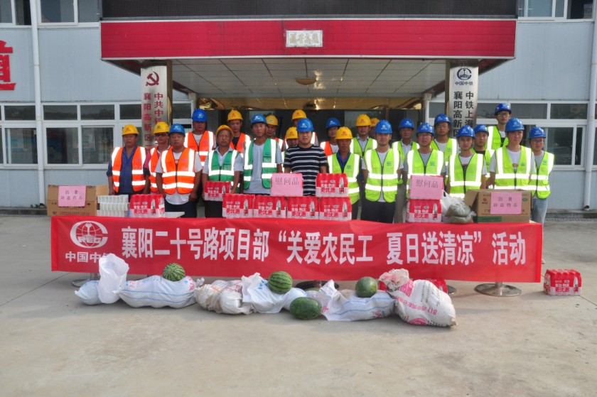自7月12日入伏以來,湖北襄陽持續(xù)高溫30℃以上,正值襄陽區(qū)域經(jīng)理部各在建項目施工生產(chǎn)的關(guān)鍵時期,為了保障外協(xié)隊施工人員的安全健康,確保他們能夠全身心的投入到施工大干中去,襄陽區(qū)域經(jīng)理部工會積極開展“夏日送清涼 關(guān)愛農(nóng)民工”活動。