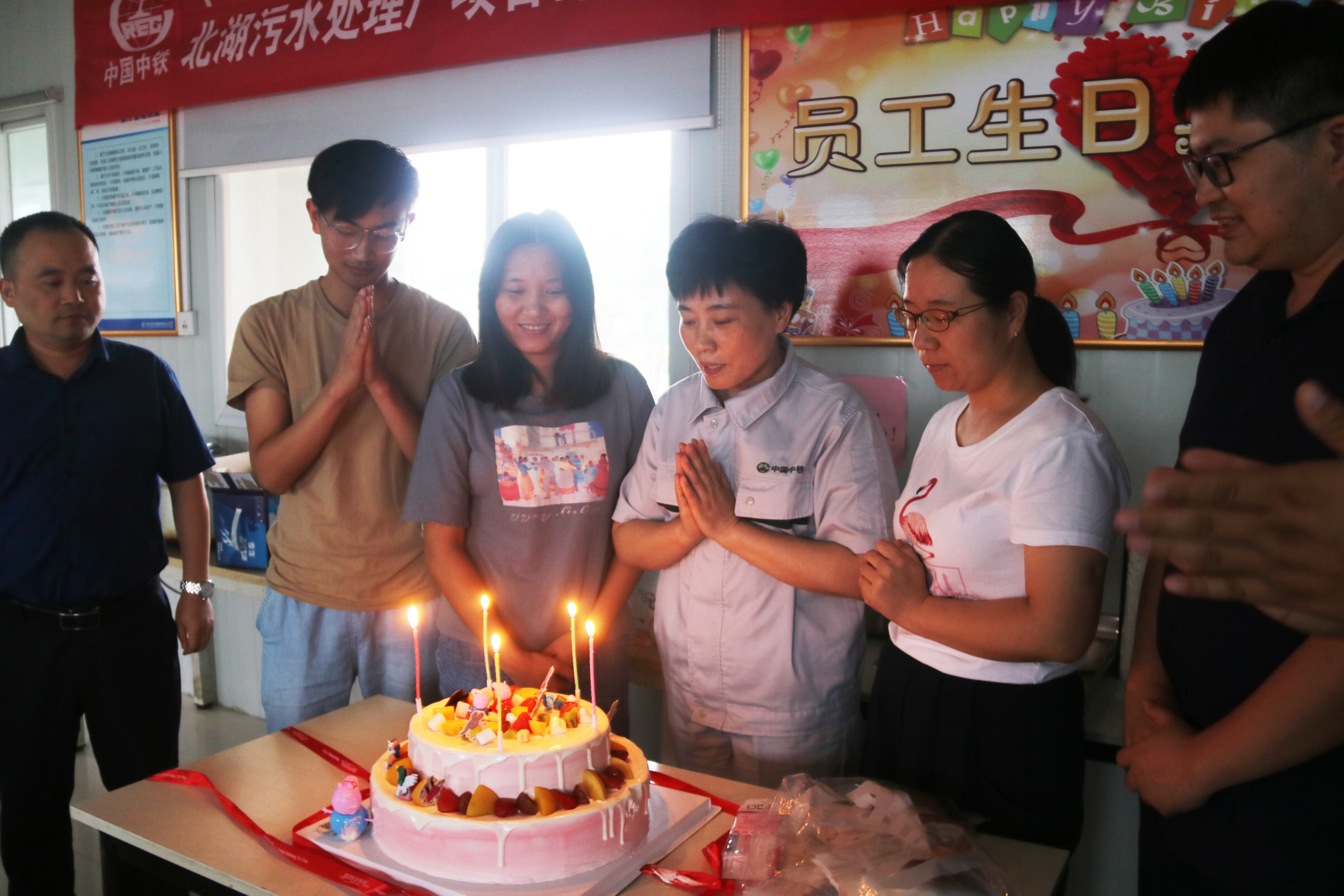 7月19日,在武漢北湖項目部,各色的彩帶裝點著員工食堂,所有員工歡聚一起,為新老員工舉辦集體生日與迎新活動。大家為二季度過生日的員工與實習(xí)生準(zhǔn)備了豐盛的飯菜和生日蛋糕,笑容映照在每一個人的臉上,溫暖縈繞在每一個人的心中。“我們雖然來自全國各地,但在這里感受到了家