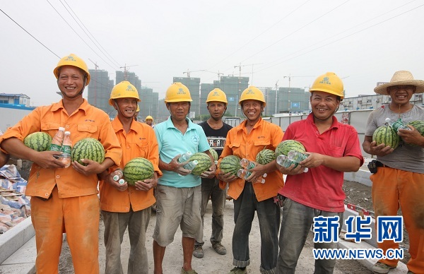 “各位工友快到我這里來,項(xiàng)目上給我們發(fā)西瓜和礦泉水了。”16日上午九點(diǎn)三十分,南京市棲霞區(qū)丁家莊保障房工地,中鐵上海工程局市政公司南京丁家莊保障房項(xiàng)目現(xiàn)場(chǎng),揮汗作業(yè)的幾十...