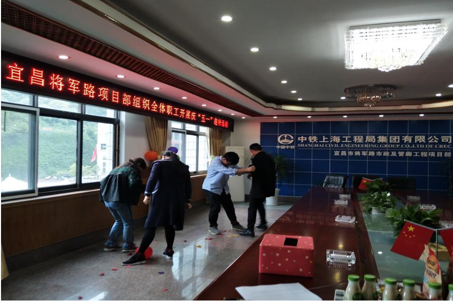 430日下午,宜昌市將軍路項目部組織全體職工開展了慶“五一”趣味活動,大家自告奮勇地參與到“踩氣球”和“準投球”的活動中,歡呼聲迅速將現場的氣氛推到高潮。
