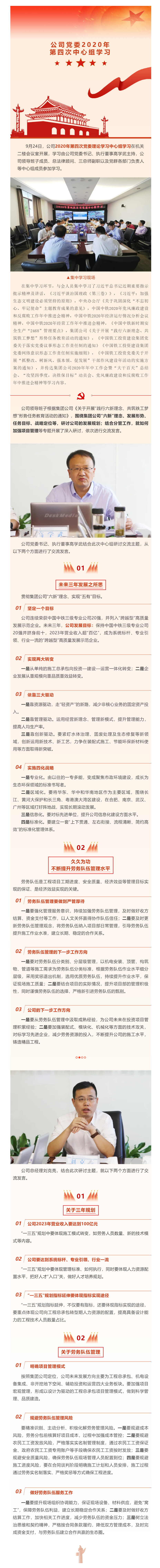黨委中心組學習|劃重點:踐行鐵工“六新”理念,完善公司三年規劃,促進勞務管理提升!