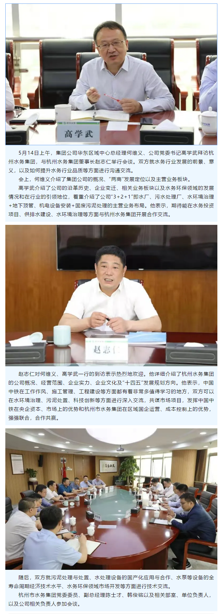 集團(tuán)公司華東區(qū)域中心總經(jīng)理何維義、公司黨委書記高學(xué)武拜訪杭州水務(wù)集團(tuán)